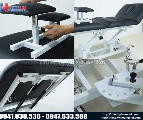 - Giường được chia làm 4 phần, với các góc độ nâng hạ linh hoạt phù hợp với nhiều tư thế điều trị khác nhau