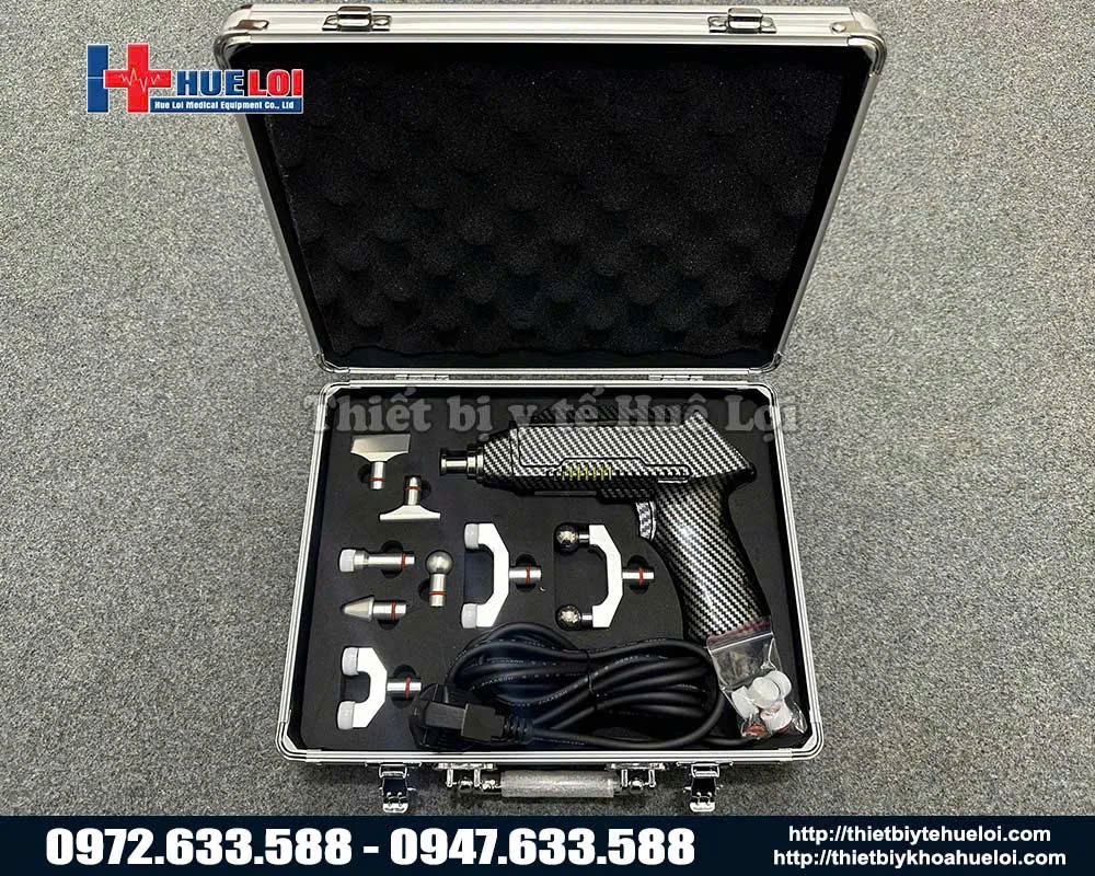 Súng bấm huyệt tác động cột sống cao cấp có 8 loại đầu tác động khác nhau, lực tác động lên tới 1500N (tác dụng mạnh hơn-sâu hơn), thiết kế tay cầm tinh tế, vỏ bằng nhựa ABS, cùng hệ thống tản nhiệt thông minh đem đến tuổi thọ lâu bền cho sản phẩm.